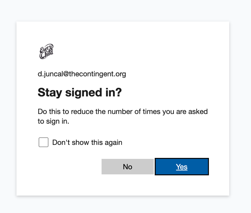 - You will be asked if you’d like to stay signed in. Either option works (“Yes” or “No”) works, as is just based on your preference. Click on either button.